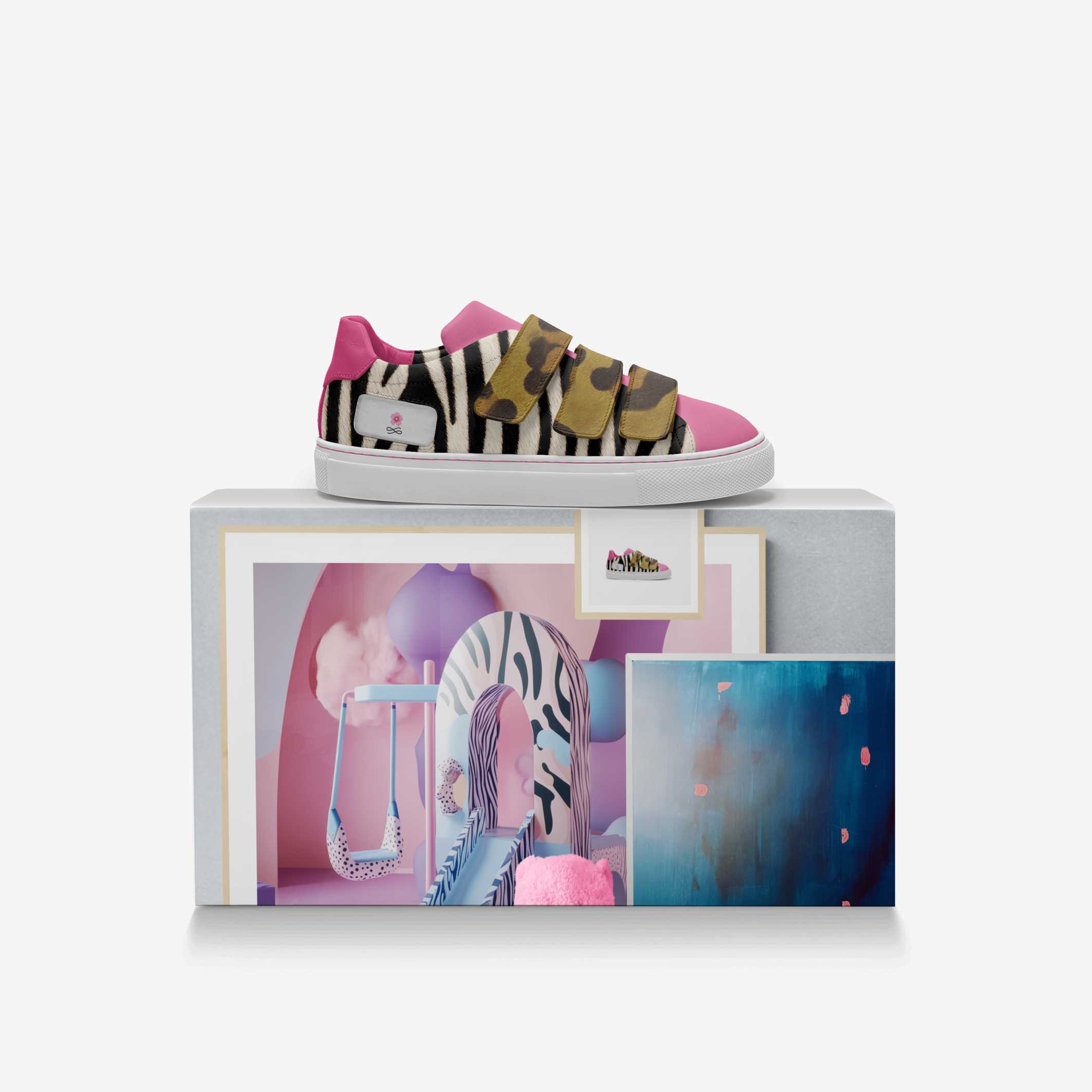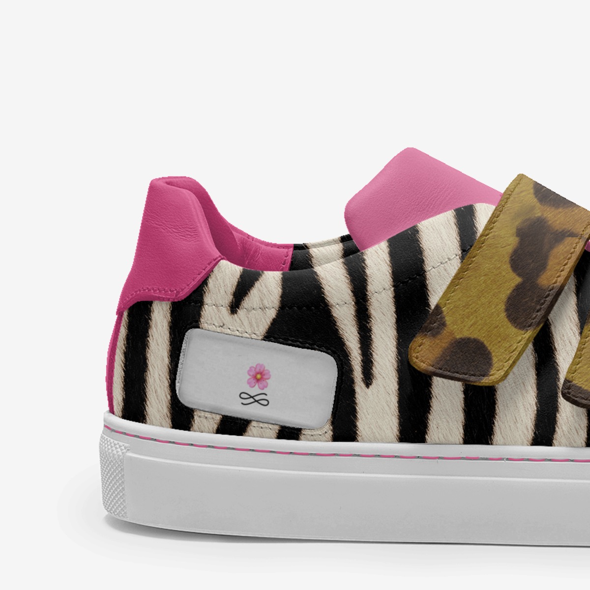 Crafted with love and precision in the heart of Le Marche, Italy 🇮🇹 , the Princess Drop Edition merges playful design with unmatched Italian craftsmanship. Featuring premium zebra-print panels with bold camo details and vibrant pink accents, this sneaker sparks creativity while ensuring everyday comfort for little trendsetters.