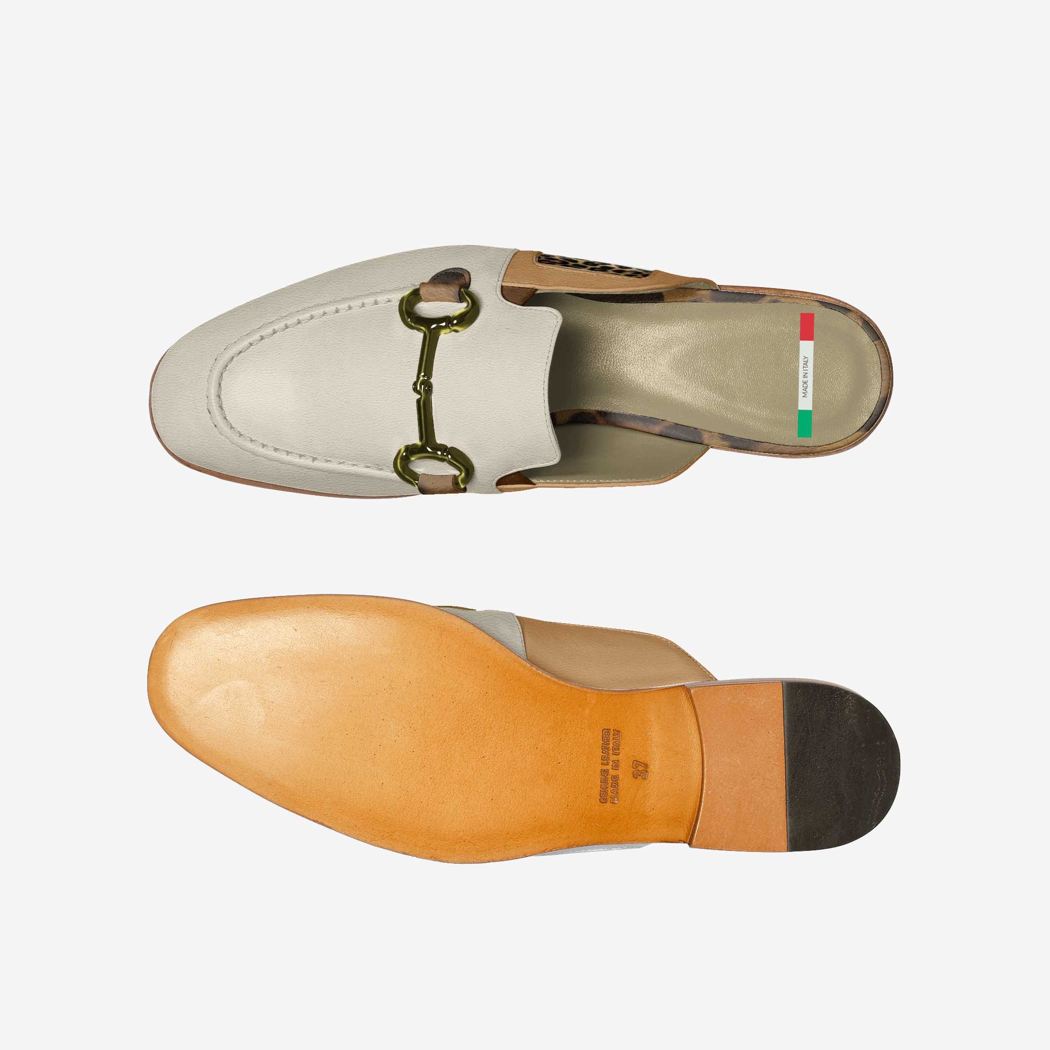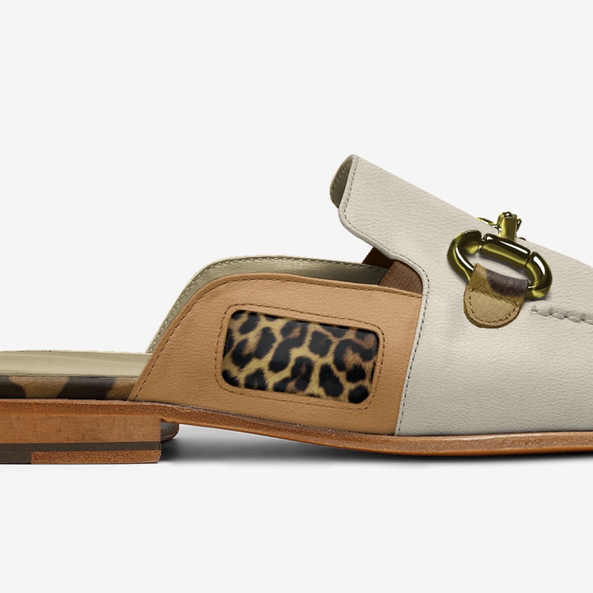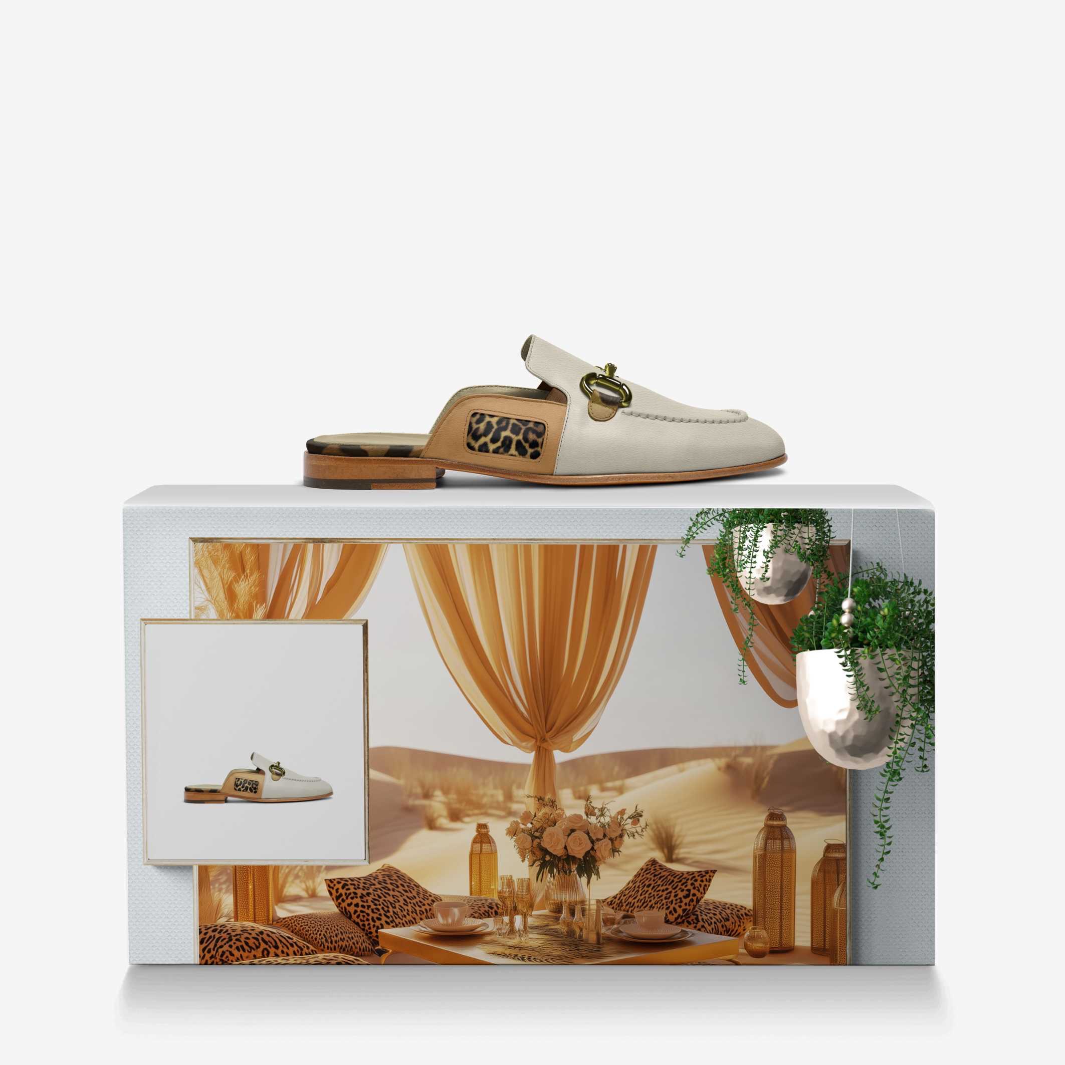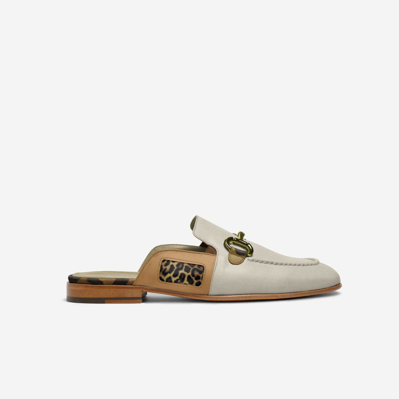 The Desert Chic slippers are a visual tribute to the golden hues of sunlit sands. Featuring a neutral beige base complemented by bold leopard-print accents and a golden metal bit detail, these slip-ons radiate understated opulence.