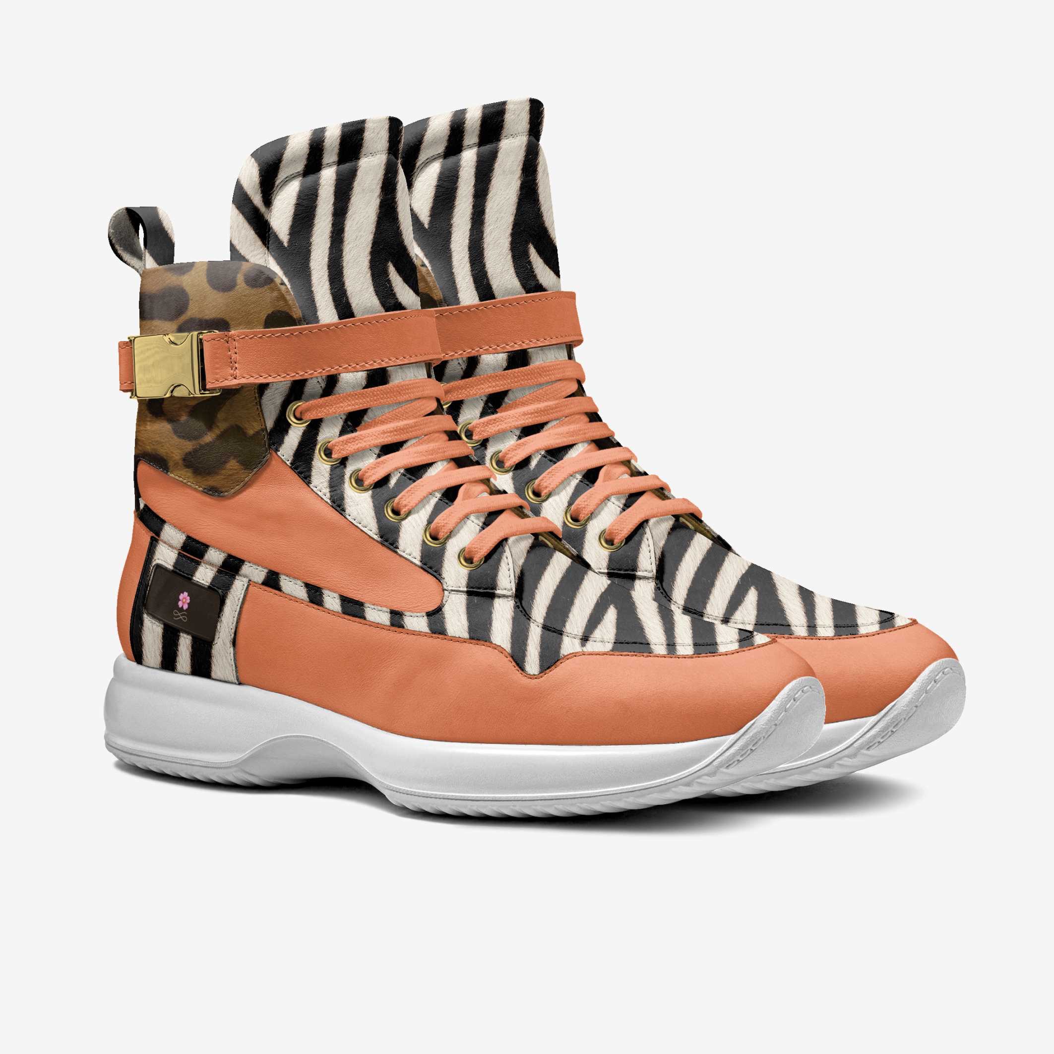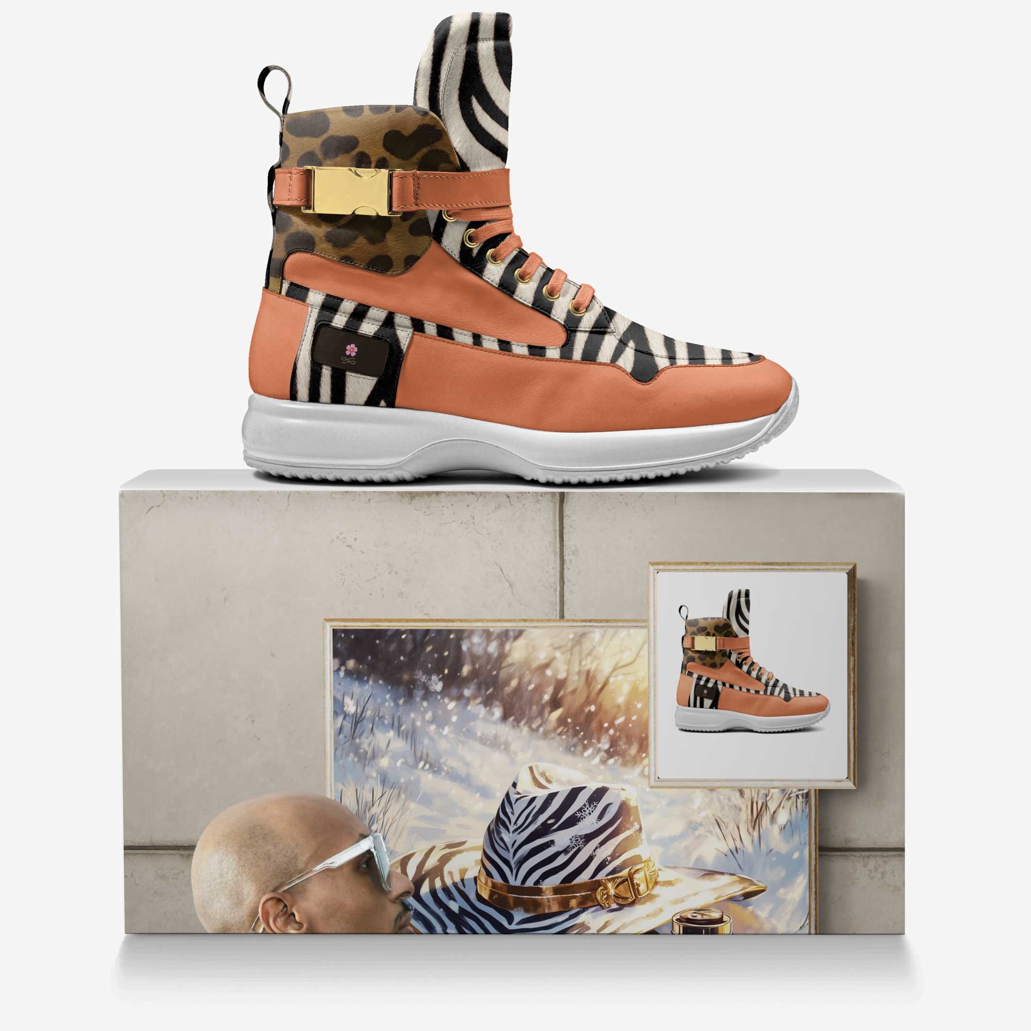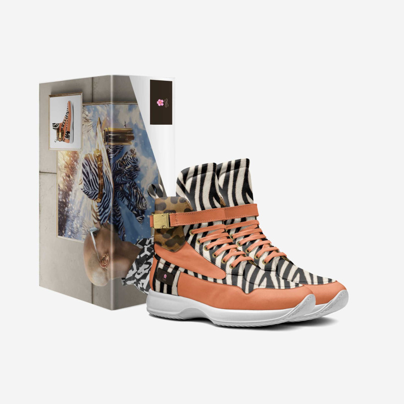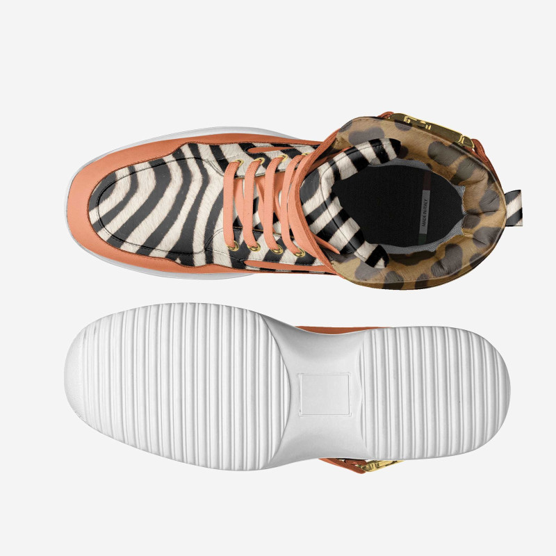 ◦ Crafted with the finest Italian leather, featuring a striking mix of zebra and leopard prints paired with bold orange panels.